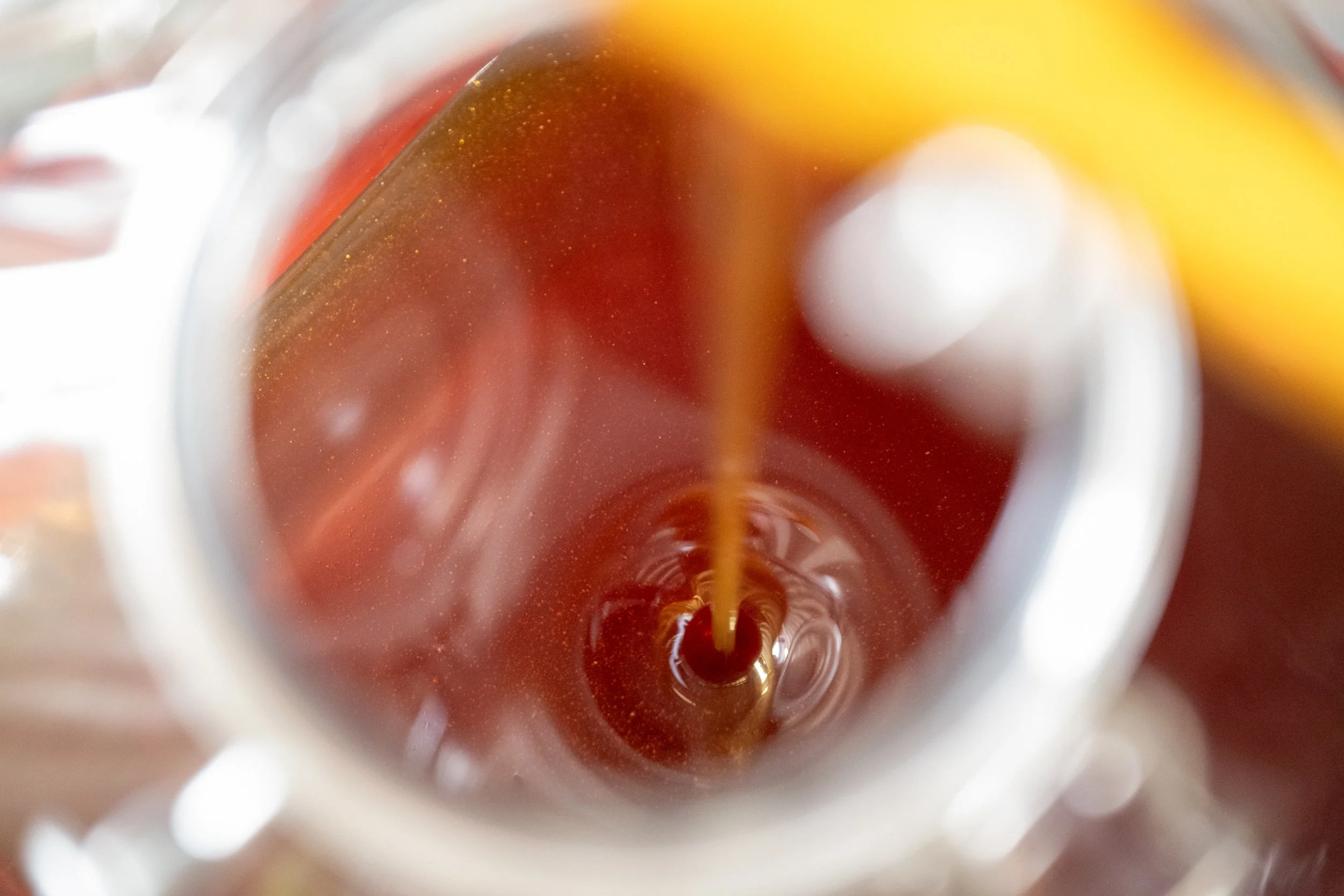 Our honey is strained through a 425 micron mesh sieve. It is never filtered or heated. Due to the honey being strained rather than filtered, some traces of bee parts and wax may be present in the honey.